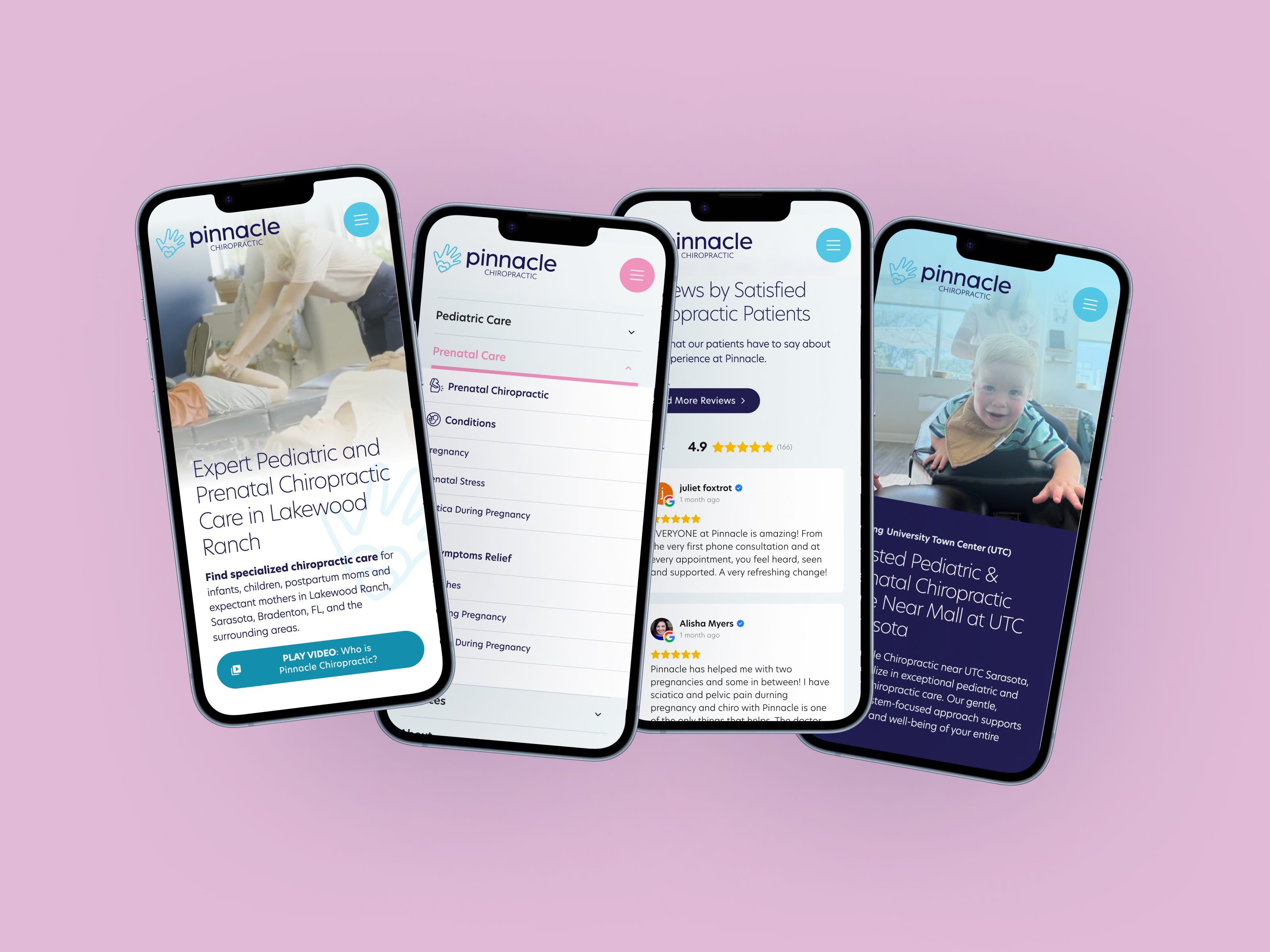 Pinnacle specializes in gentle, specific care for children and moms — so the website had to feel both professional and warm. We used soft visuals, clear typography, and a structured layout that guided people to answers fast.