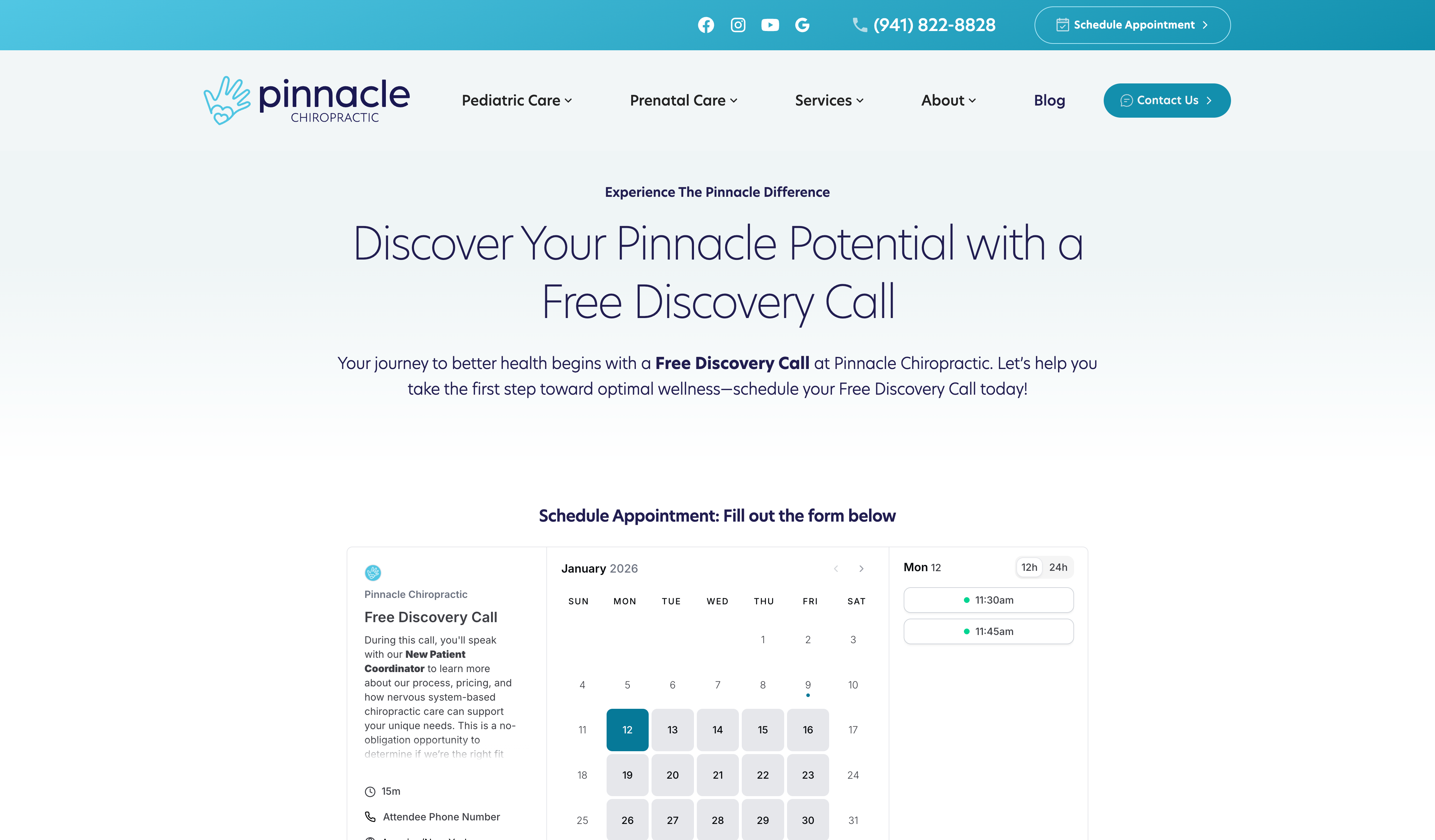Pinnacle Chiropractic offers compassionate pediatric and prenatal care — and now their website delivers that same clarity and confidence. We helped them go from invisible to unstoppable with SEO-focused content, smooth Webflow UX, and a trusted brand presence.